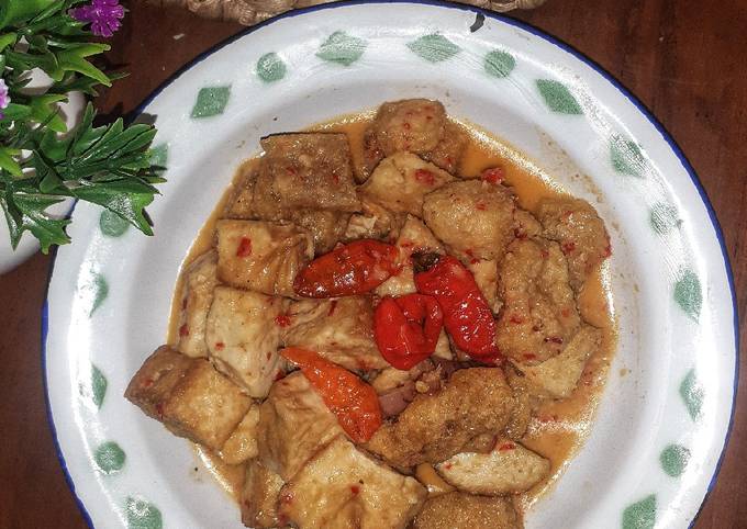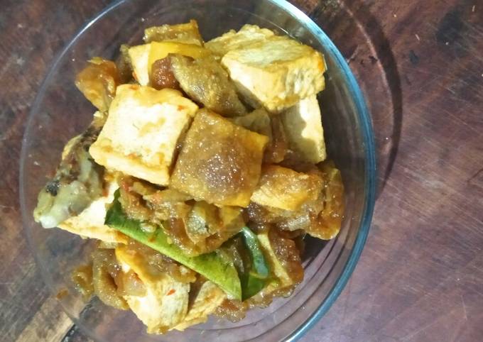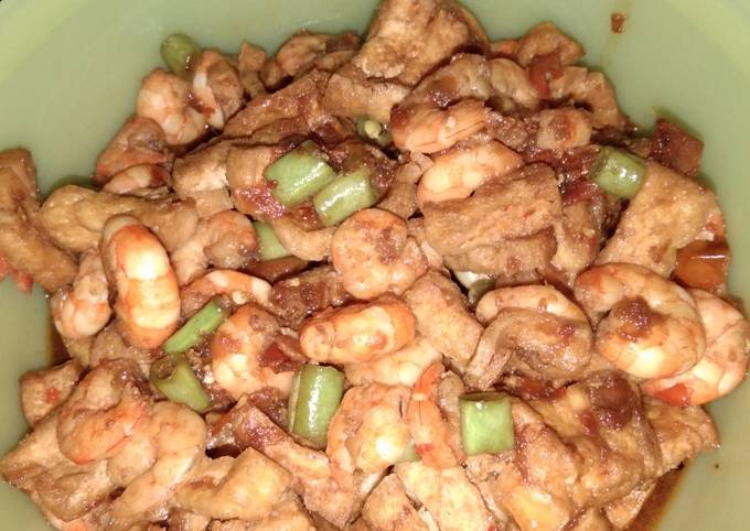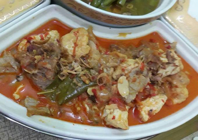 Sambel goreng kentang tahu ati. Sambel goreng krecek tahu kentang. Goreng tahu hingga matang, angkat dan tiriskan. Untuk sambal goreng kali ini saya menggunakan kacang merah segar dan tahu yang telah digoreng hingga matang. 'sambal goreng' is made of soya bean cake (tahu or tau kwa), fermented soya bean cake (tempe), long beans and spices.